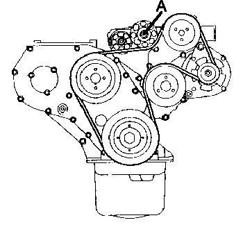 spanner on to the tensioning pulley centre bolt (A above right) and