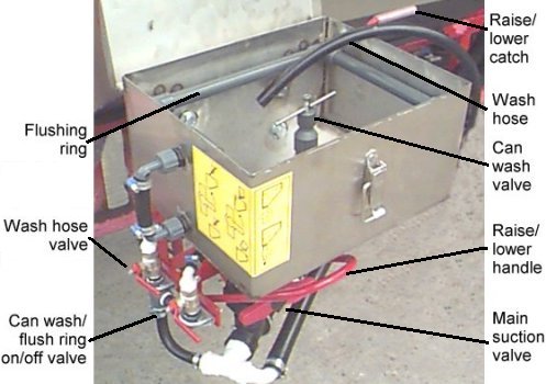 A container flushing nozzle is also built into the hopper which can be used to flush out empty chemical containers with the washings going straight into the hopper.