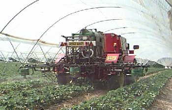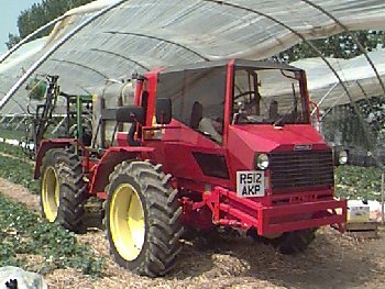 Developed in 1995 and built for specialist strawberry growers in Germany, this machine is fitted with a very high output spraying system to allow the application of up to 2,000 litres/hectare! Tank capacity is higher than standard at 1,800 litres and a wide axle kit is fitted to allow for the 2m track width (79"). Slow working speeds are catered for by fitting an extra low ratio first gear and low final drive. |