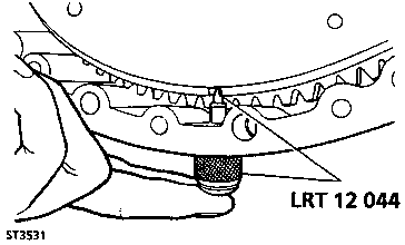 plate. Remove 2 bolts and plate and insert timing tool LRT-12-044