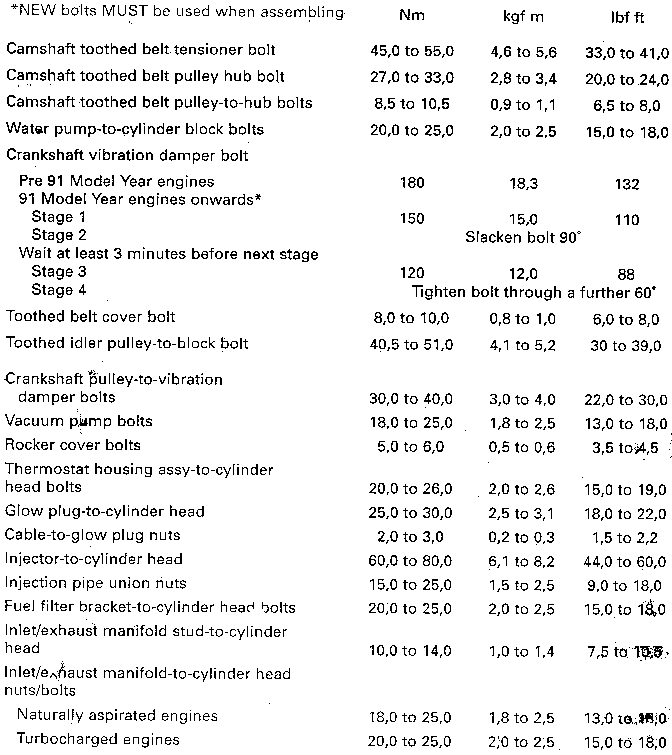 Ford XLD418 engine Torque settings
