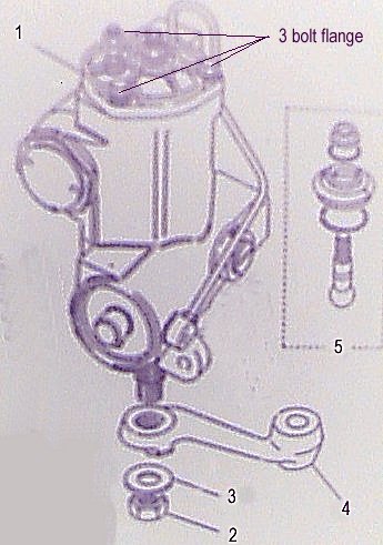 3 types of power assisted steering units have been fitted to the Agribuggy range between 1989 and 1985. They are all available as exchange units and can be identified by the no of bolts holding the flange on which when mounted on the machine is next to the front chassis cross member